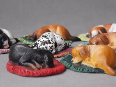 1:32 puppy in a sleeping pose. Cast in white resin.